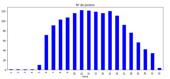 Veamos cuantos pickers o almaceneros trabajan en cada franja horaria.