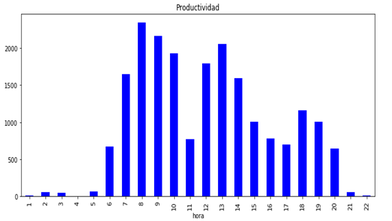 Conociendo el número de unidades despachadas por hora y el número de almaceneros dedicados al picking cada hora podemos calcular cómo evoluciona la productividad a lo largo del día.